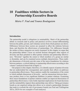 This chapter examines how diversity within sectors, and not only differences between the public, private, and civil society spheres, influences governance inside global sustainability partnerships. Using faultline analysis, we study the executive boards of six Global Financing Partnerships in climate and health, combining information on sector, donor status, and professional background. The results show that important sub-groups form within sectors, which challenges the common assumption that sectors are internally coherent. These internal alignments affect collaboration and decision making and influence partnership effectiveness. The chapter highlights the need to account for internal heterogeneity when evaluating how partnerships work and what sustainability outcomes they achieve.